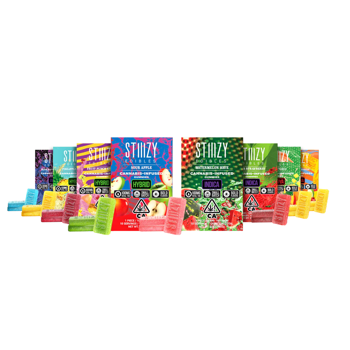 STIIIZY 100MG EDIBLE GUMMY, all edibles are not created equal. STIIIZY’s new Sour Weed Gummy line features cutting-edge formulas for rapid onset of effects, and infused with cannabis extracts for a true full spectrum experience. Every bag features 10 doses at ten mg per dose for a total of 100 mg of THC per bag. Premium Gummy Edibles For Sale Near Me