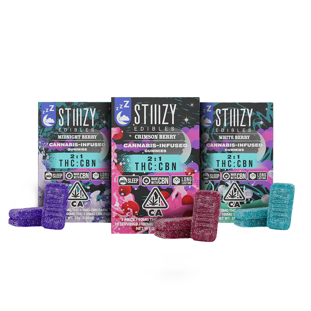 2:1 THC to CBN Edibles, STIIIZY continues our commitment to innovation and wellness with our 2:1 THC to CBN Gummy line. These delectable edibles blend THC with the relaxing powers of cannabinol (CBN). CBN is a cannabinoid that may help you sleep and ease anxiety and tension. Premium edible THC gummy for sale